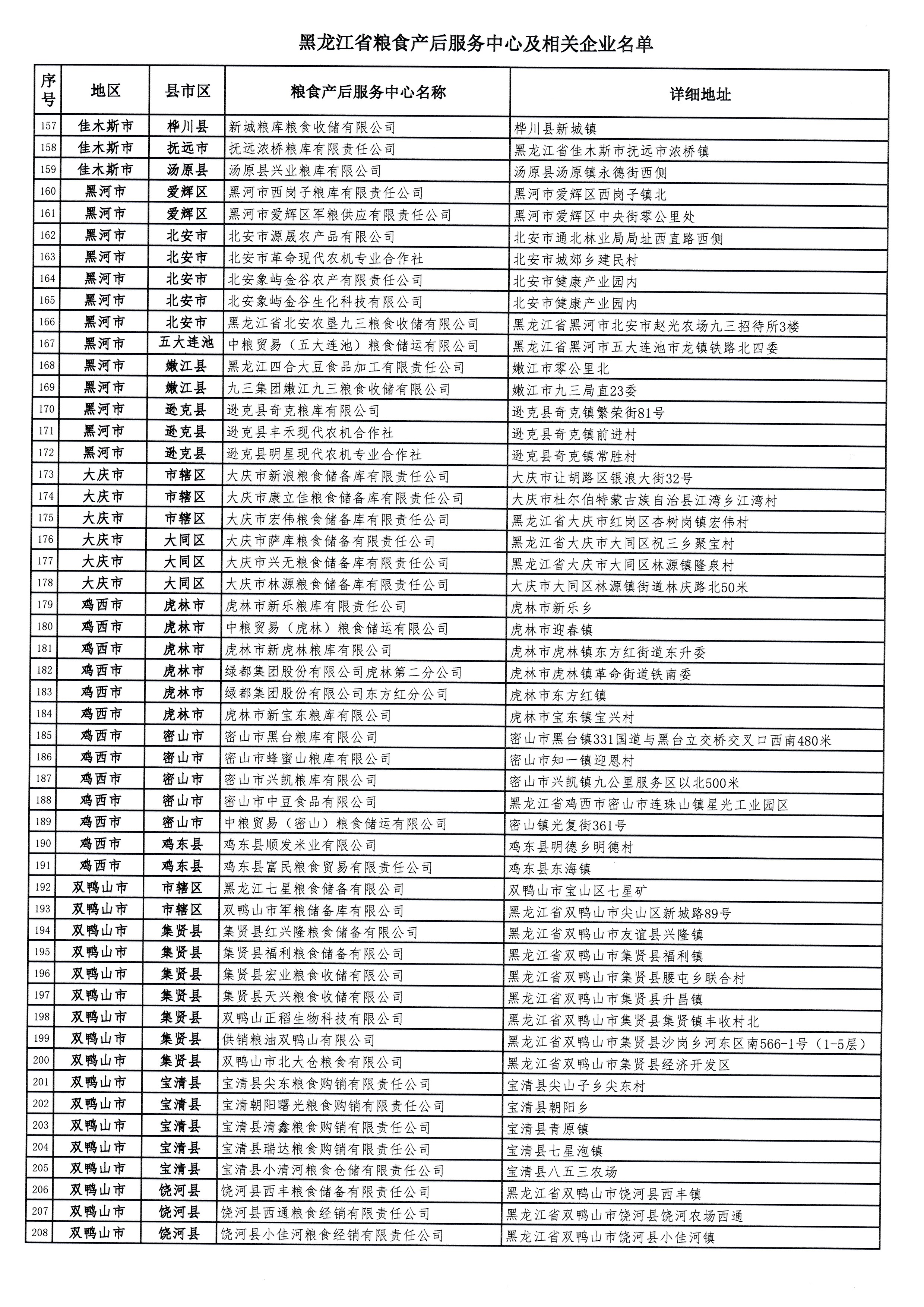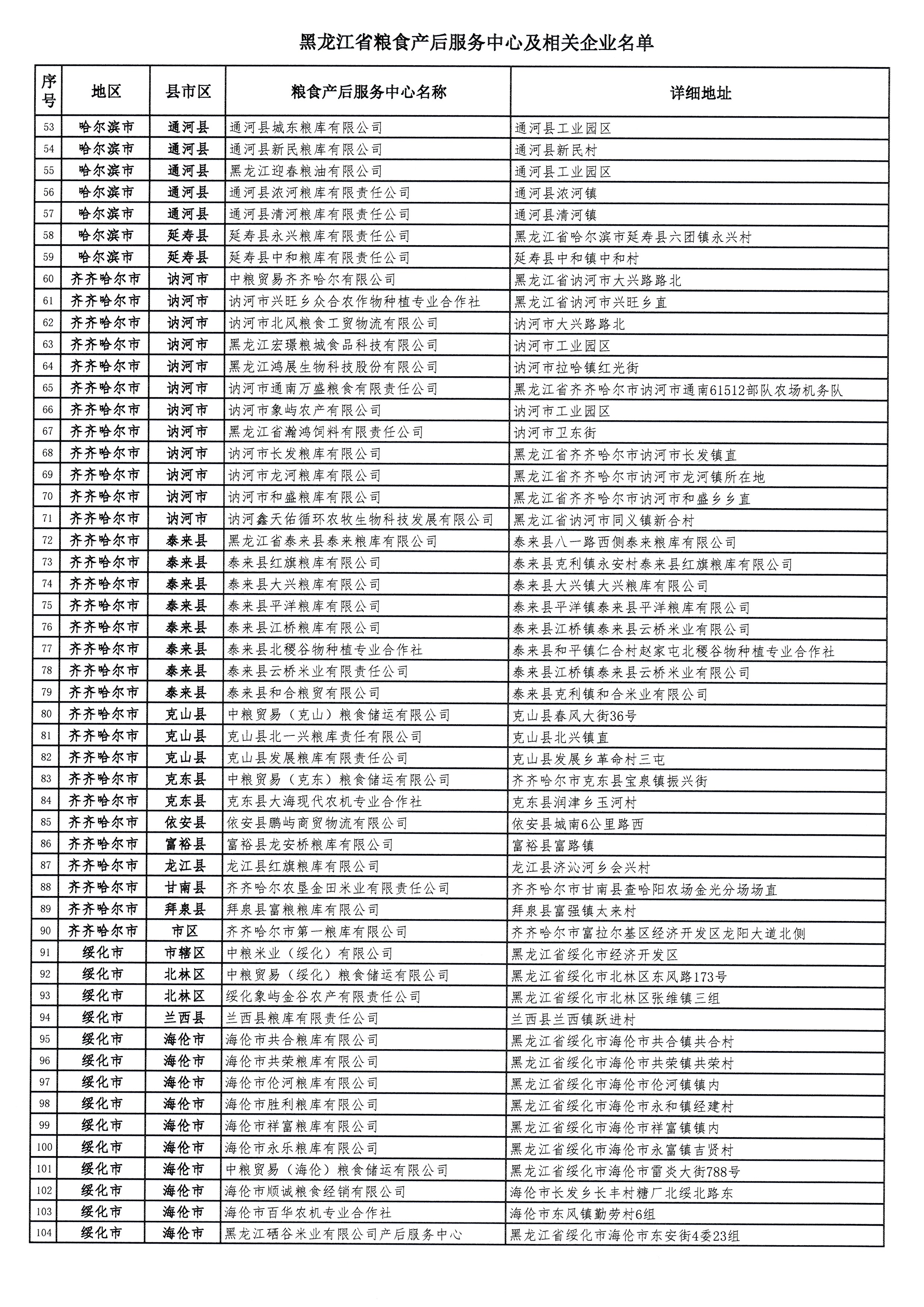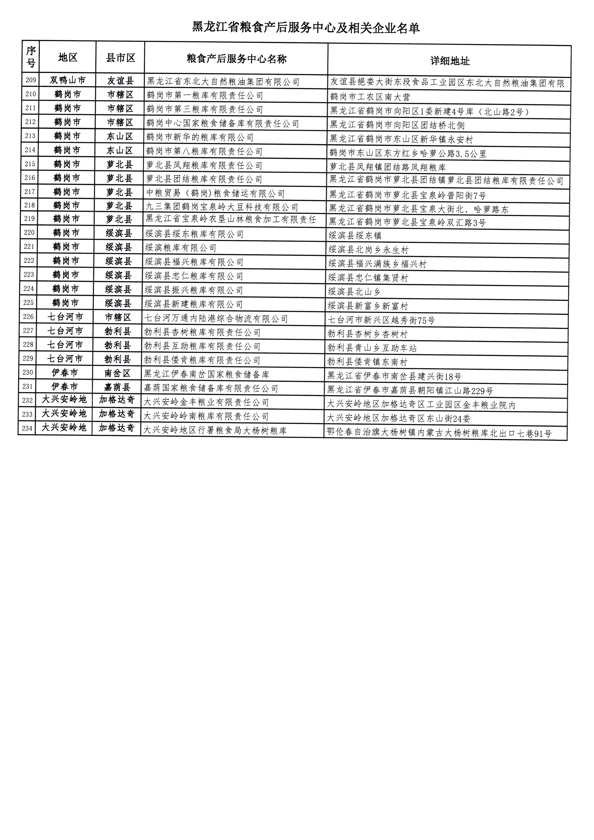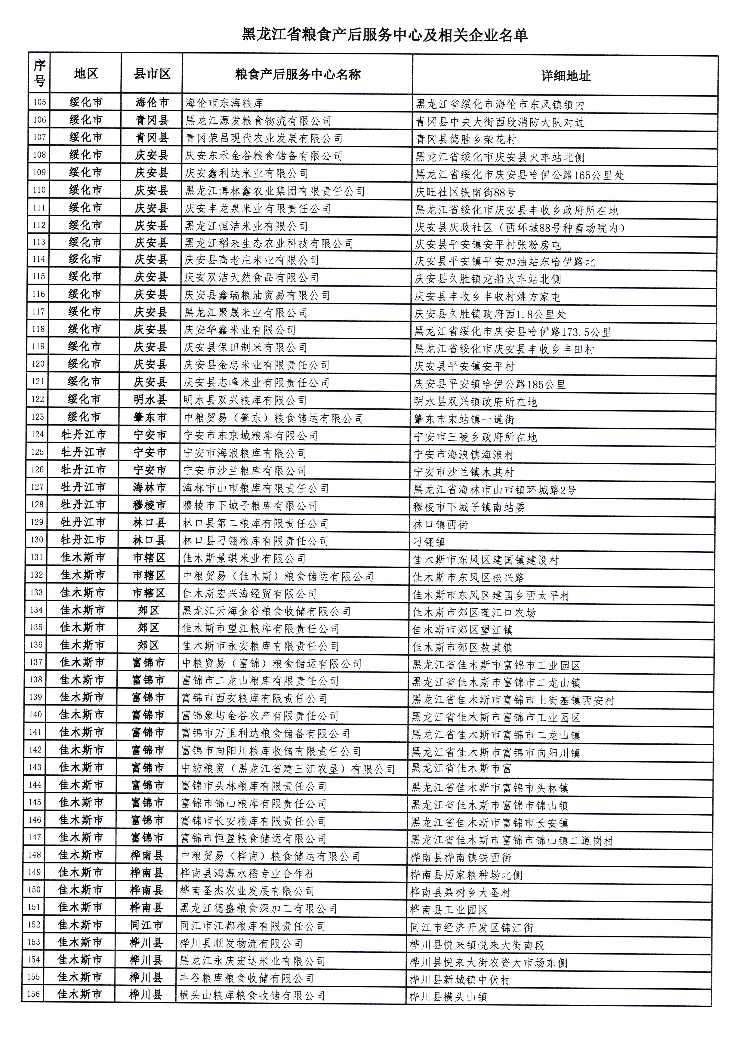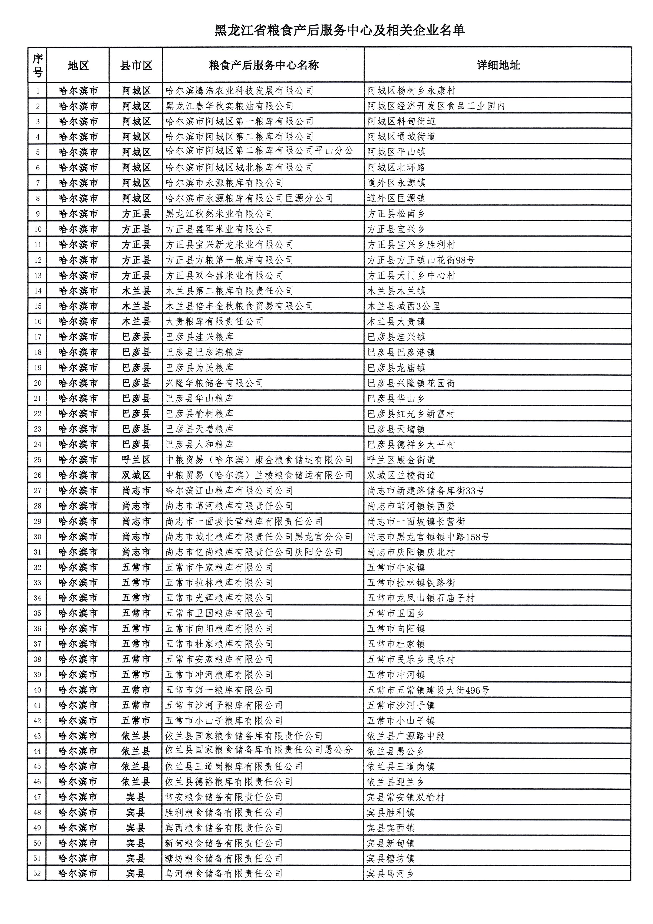 黑龙江省粮食产后服务中心及相关企业名单